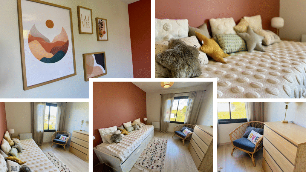 Les couleurs ont été choisies avec soin pour créer une atmosphère chaleureuse et lumineuse. Le terracotta, utilisé pour les nouveaux rangements, s’harmonise parfaitement avec les teintes neutres du beige et du bois clair existants. Cette combinaison de couleurs naturelles apporte à la fois de la chaleur et de la légèreté à l’espace, tout en créant un environnement apaisant et moderne. Le terracotta vient subtilement dynamiser l’ensemble sans perturber l’harmonie du design. Découvrez une sélection de teintes ici.